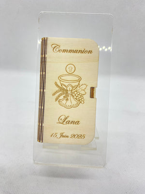 Boite en bois pour accompagner vos dragées, vos chapelets ou autres accessoires.