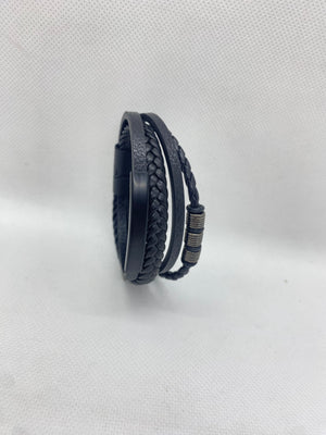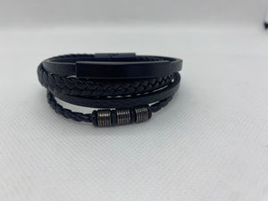 Bracelet Homme double en cuir noir fermoir aimanté 21 cm personnalisable
