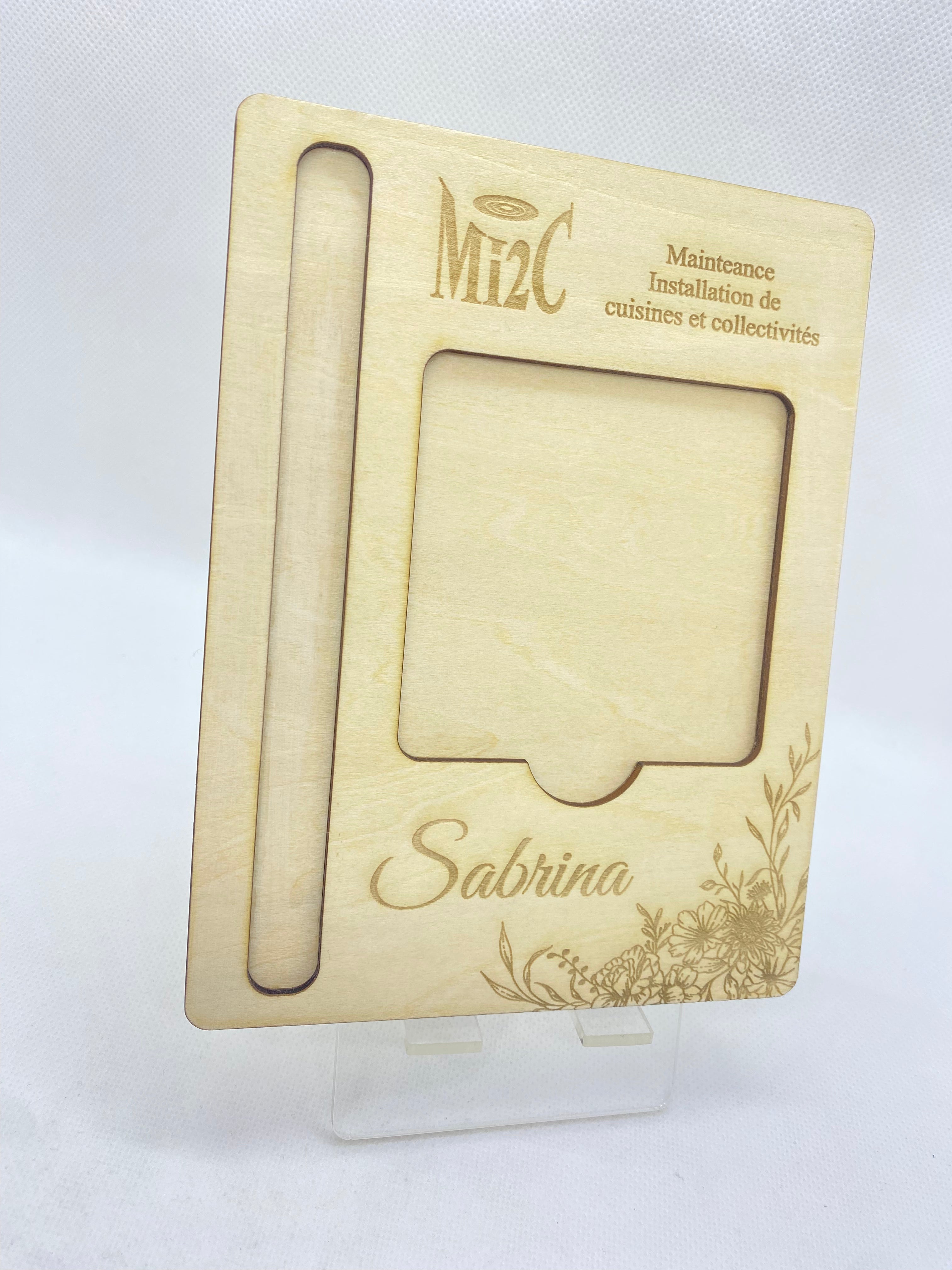 Support à post-it et stylo en bois personnalisable 12,7x16,5cm