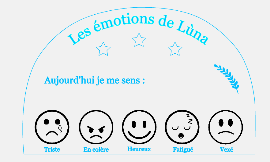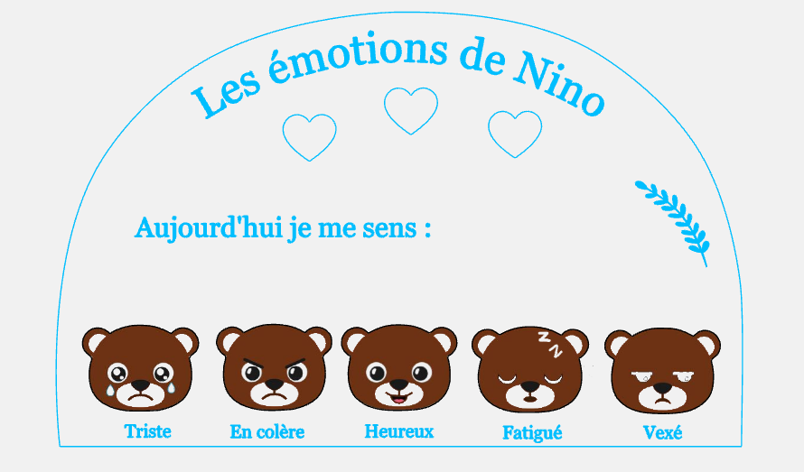 Tableau des émotions personnalisable en bois 12,5x20cm