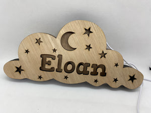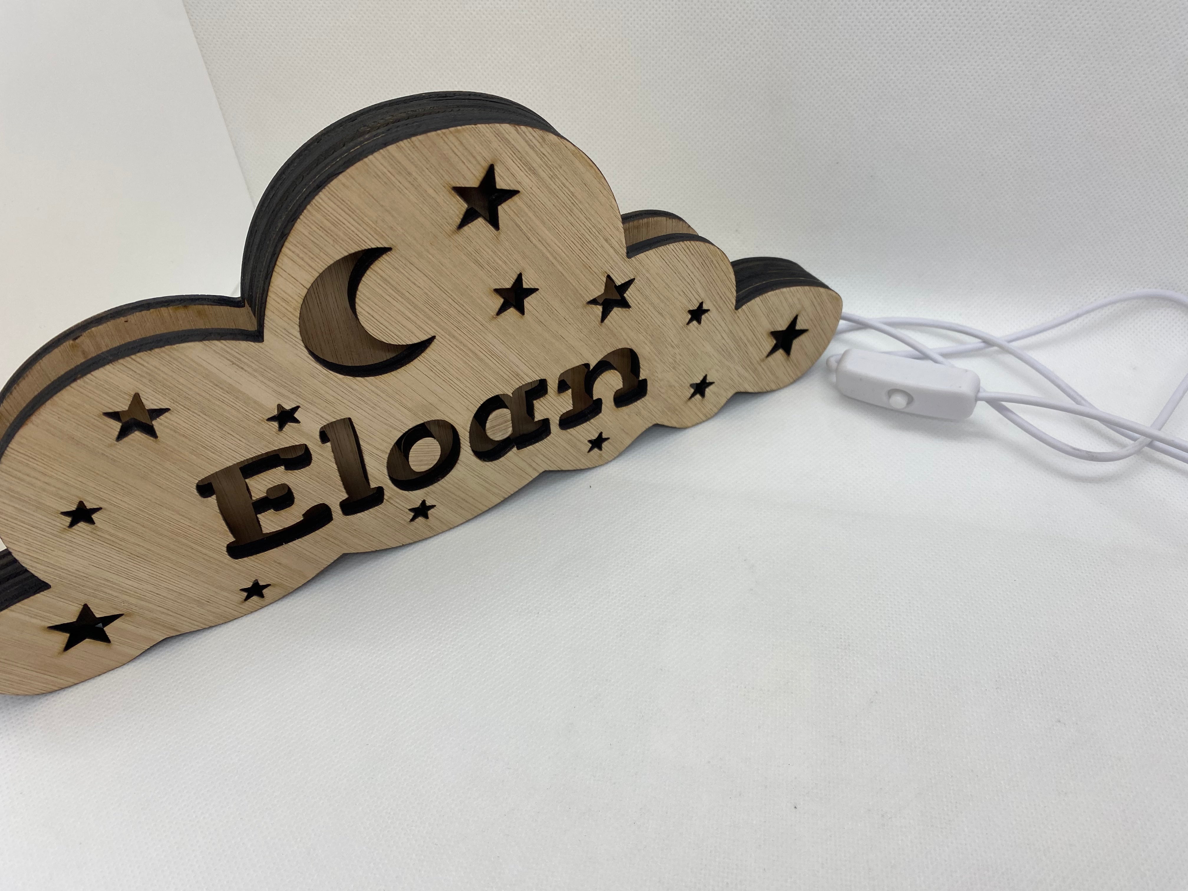 Veilleuse en bois personnalisé en forme de nuage 12,5x28 cm